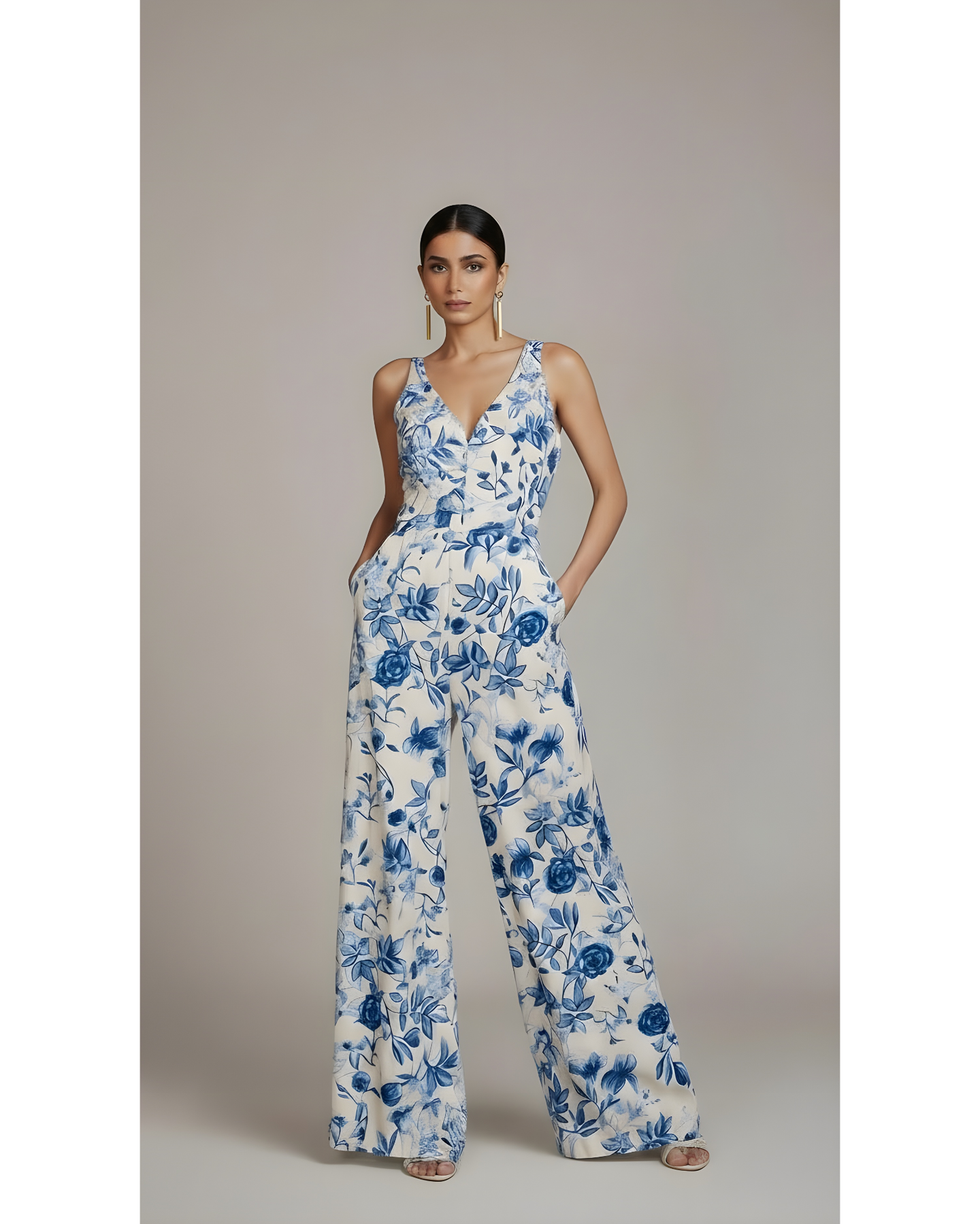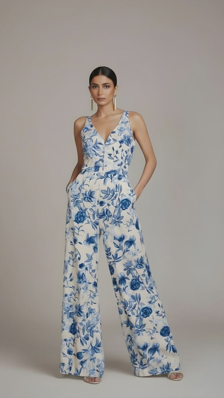 Hermoso enterizo tipo palazo, tiras cruzadas y ajustables en la espalda, lleva cierre posterior. Con esta pieza deslumbrarás en cualquier ocasión.