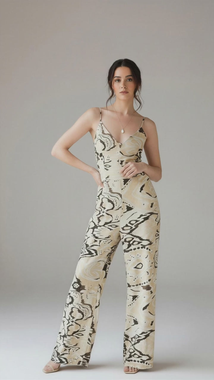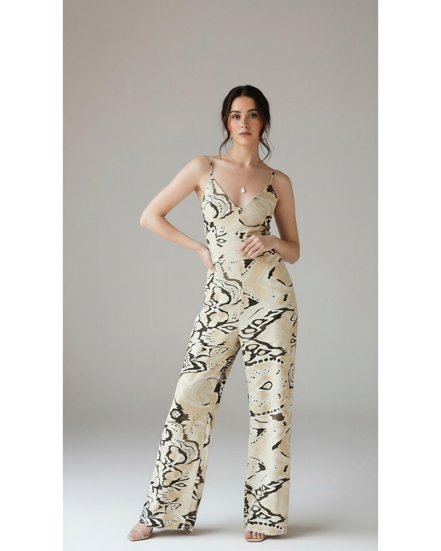 Hermoso enterizo tipo palazo, tiras cruzadas y ajustables en la espalda, lleva cierre posterior. Con esta pieza deslumbrarás en cualquier ocasión.