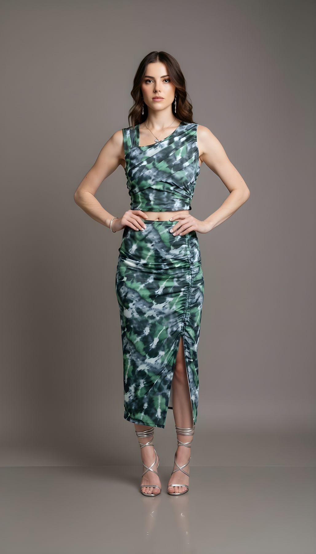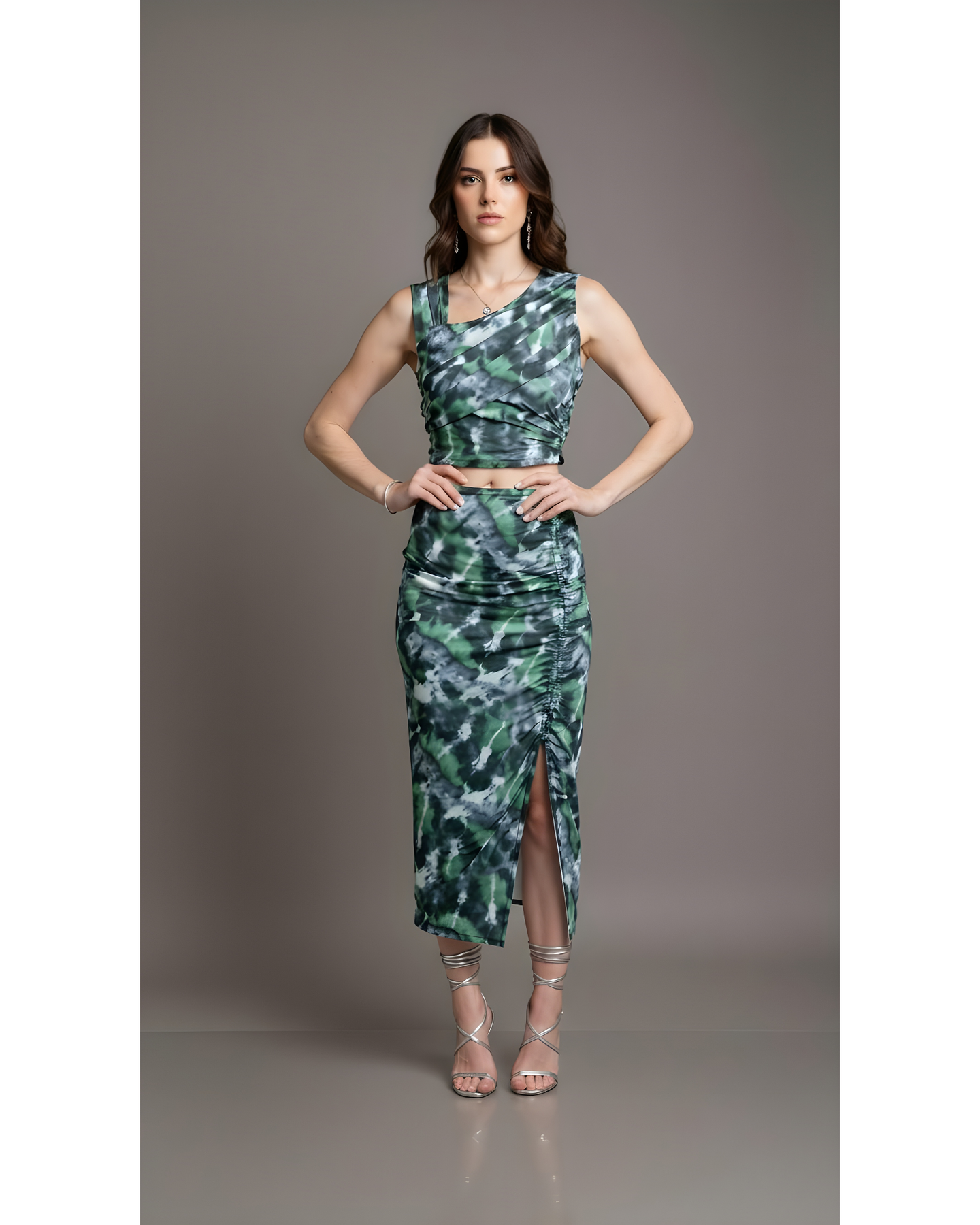 Falda corte recto, con tiras ajustables a un lado, el largo es midi, tiene elástico en la parte de atrás de la cintura, tiene forro interno, la tela es muy suave al tacto, perfecta para este verano.