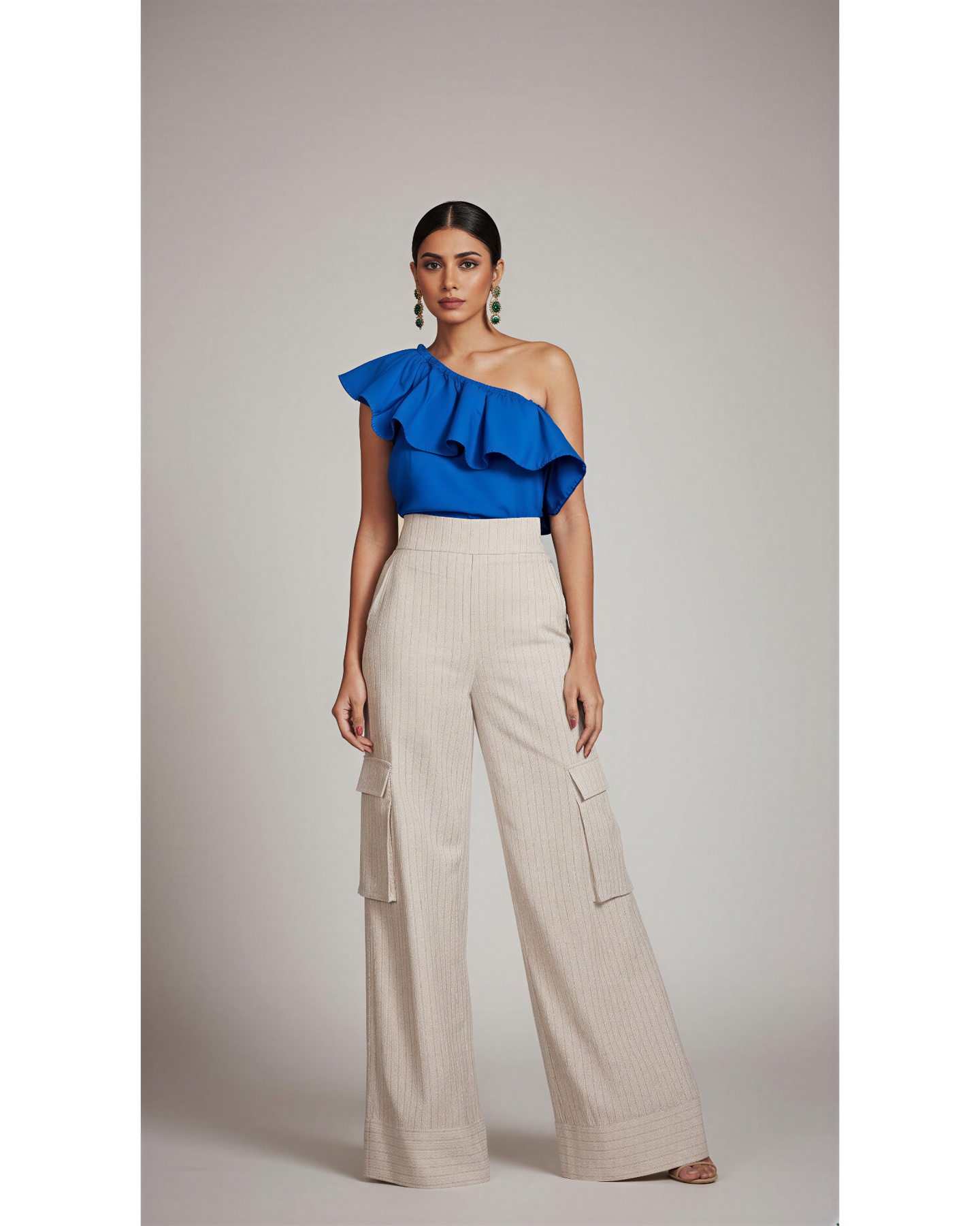 Una pieza que define el estilo GONNA: sofisticada, segura y moderna.Su tono azul eléctrico y diseño asimétrico aportan fuerza y frescura.Llévala con prendas neutras o denim para un look contemporáneo.