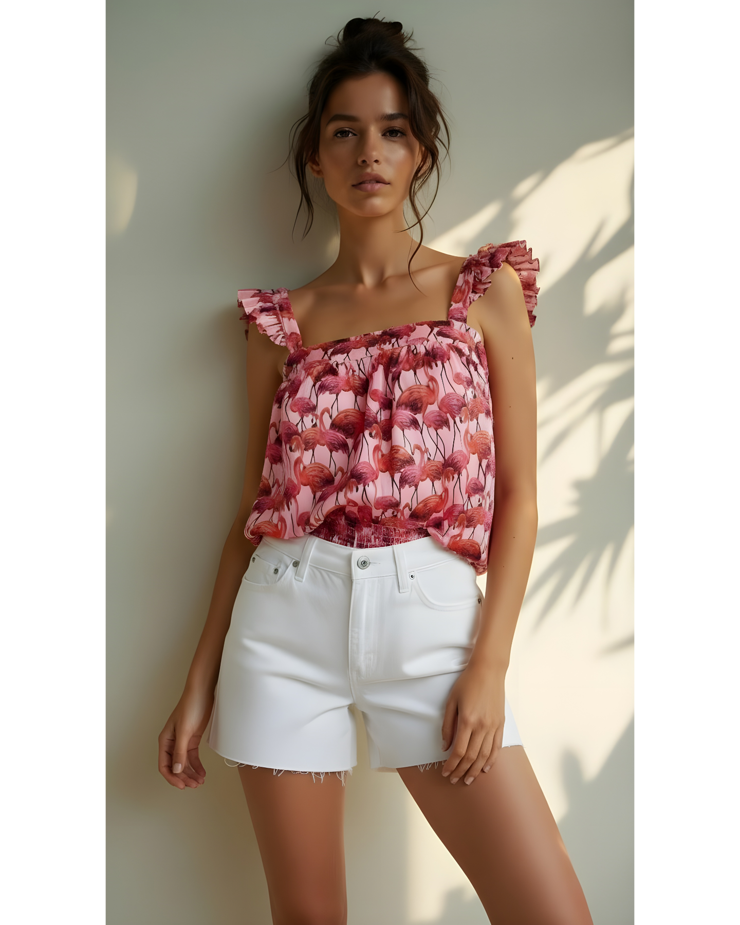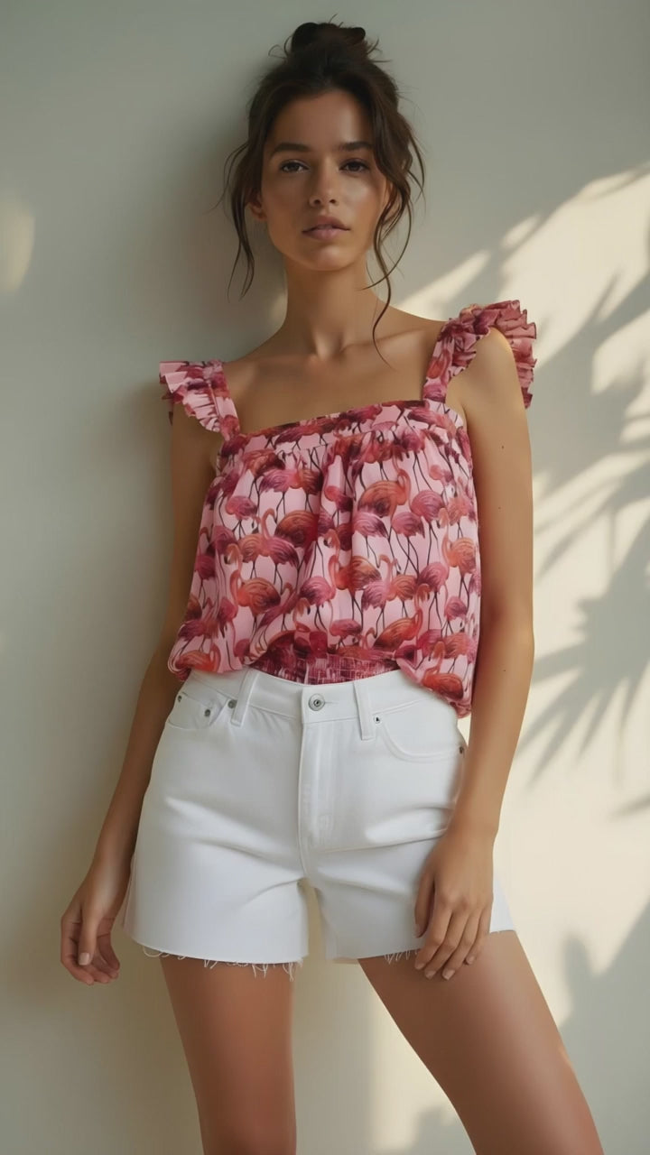 Blusa escote cuadrado con detalle de bobitos en los hombros, con un nudo en la espalda.