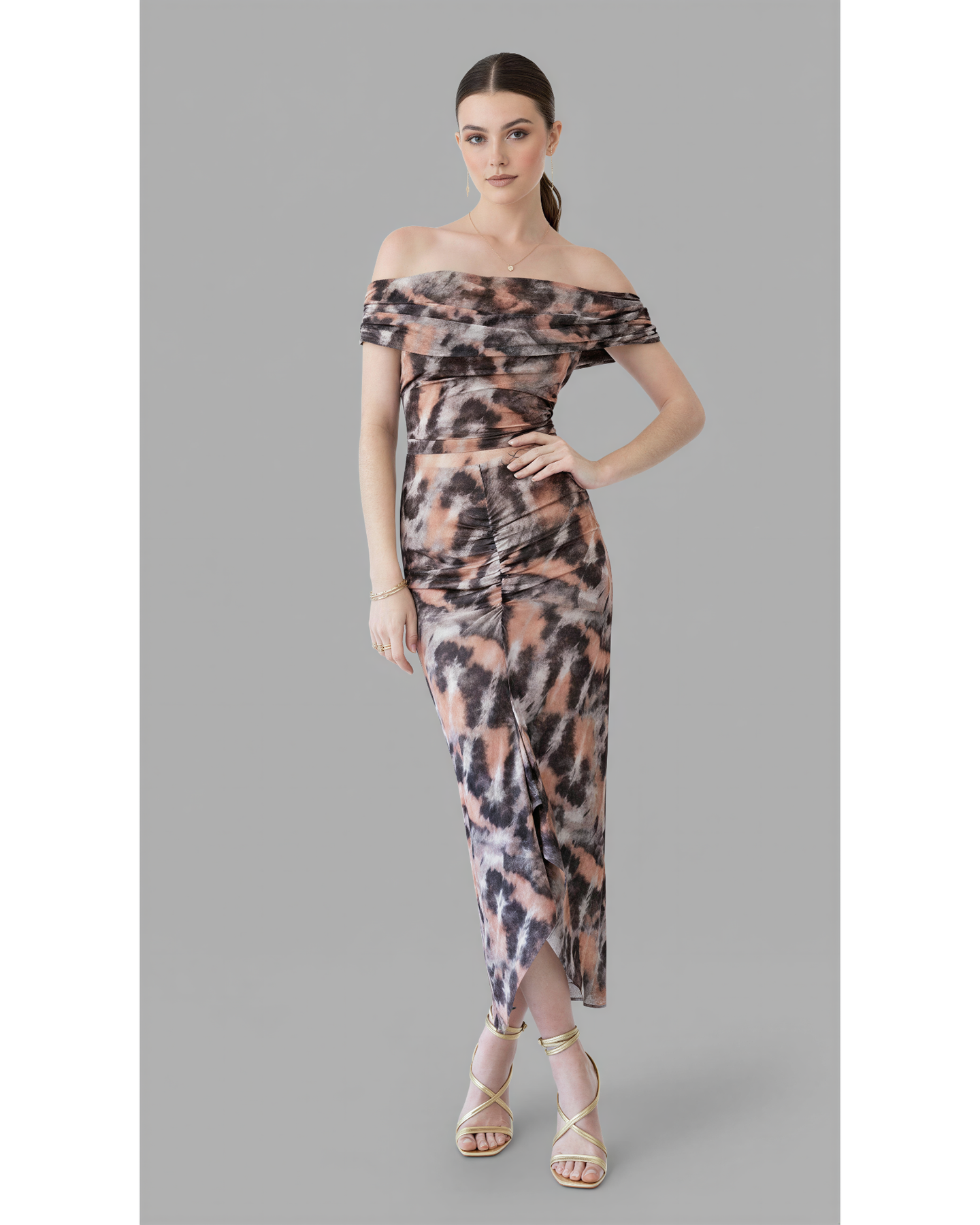 Falda corte recto con un volante en parte delantera, el largo es midi, tiene elástico en la parte de atrás de la cintura, tiene forro interno, la tela es muy suave al tacto, perfecta para este verano.