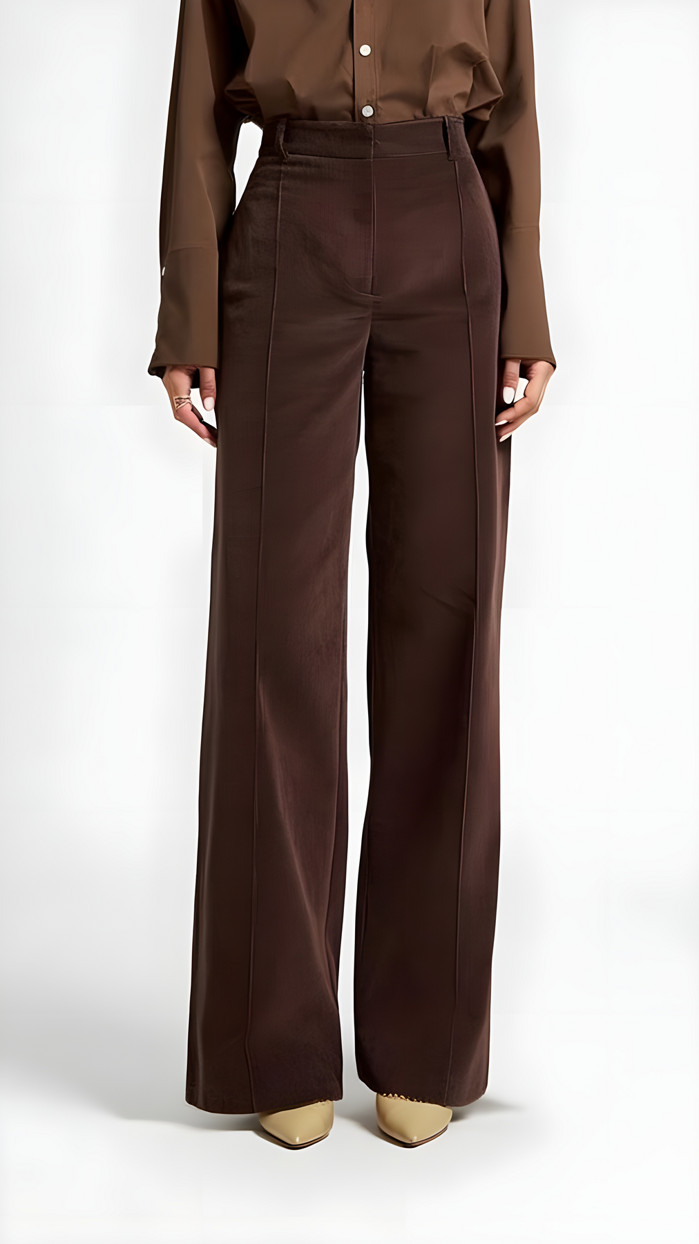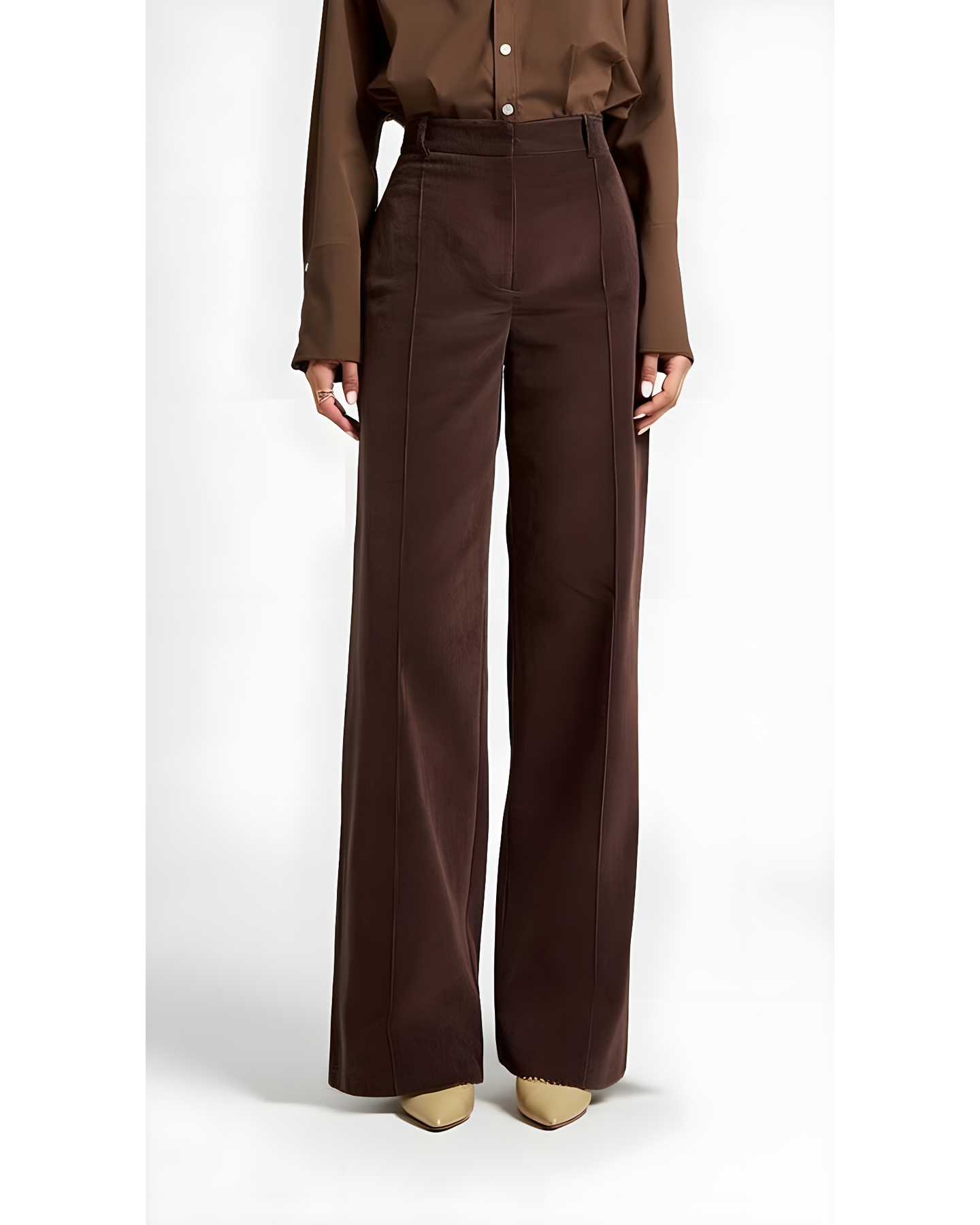Hermoso pantalón de tiro alto y estilo palazo, tiene bolsillos, presillas y un lindo entalle.
