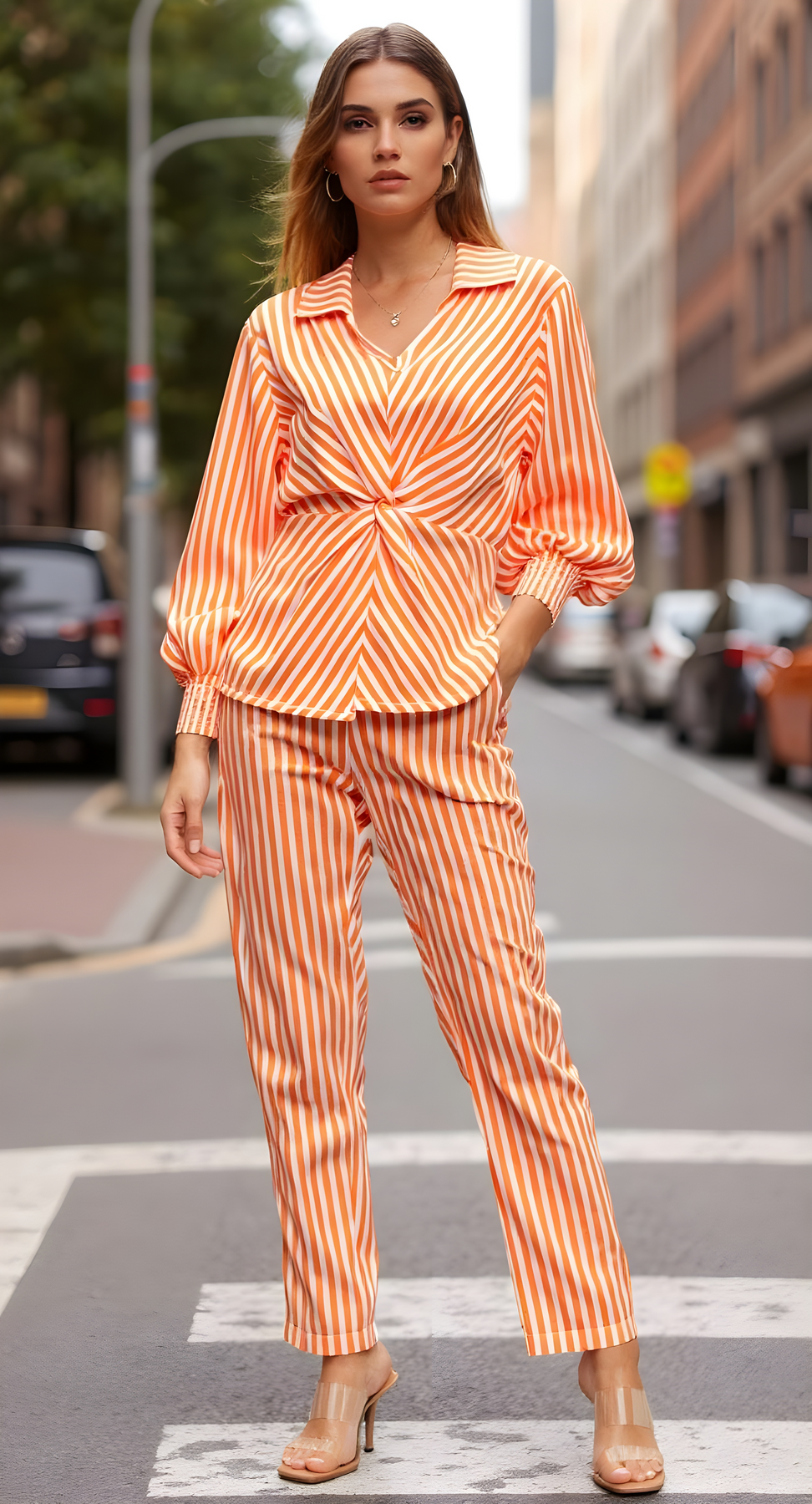 PANTALON ANAIS RAYAS NARANJA