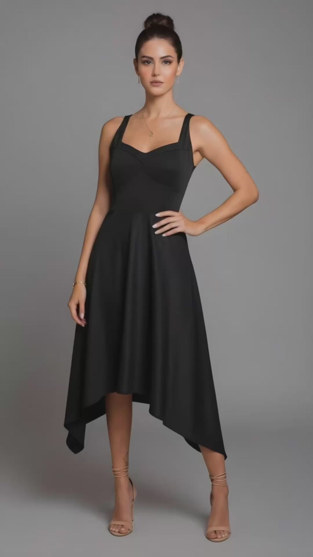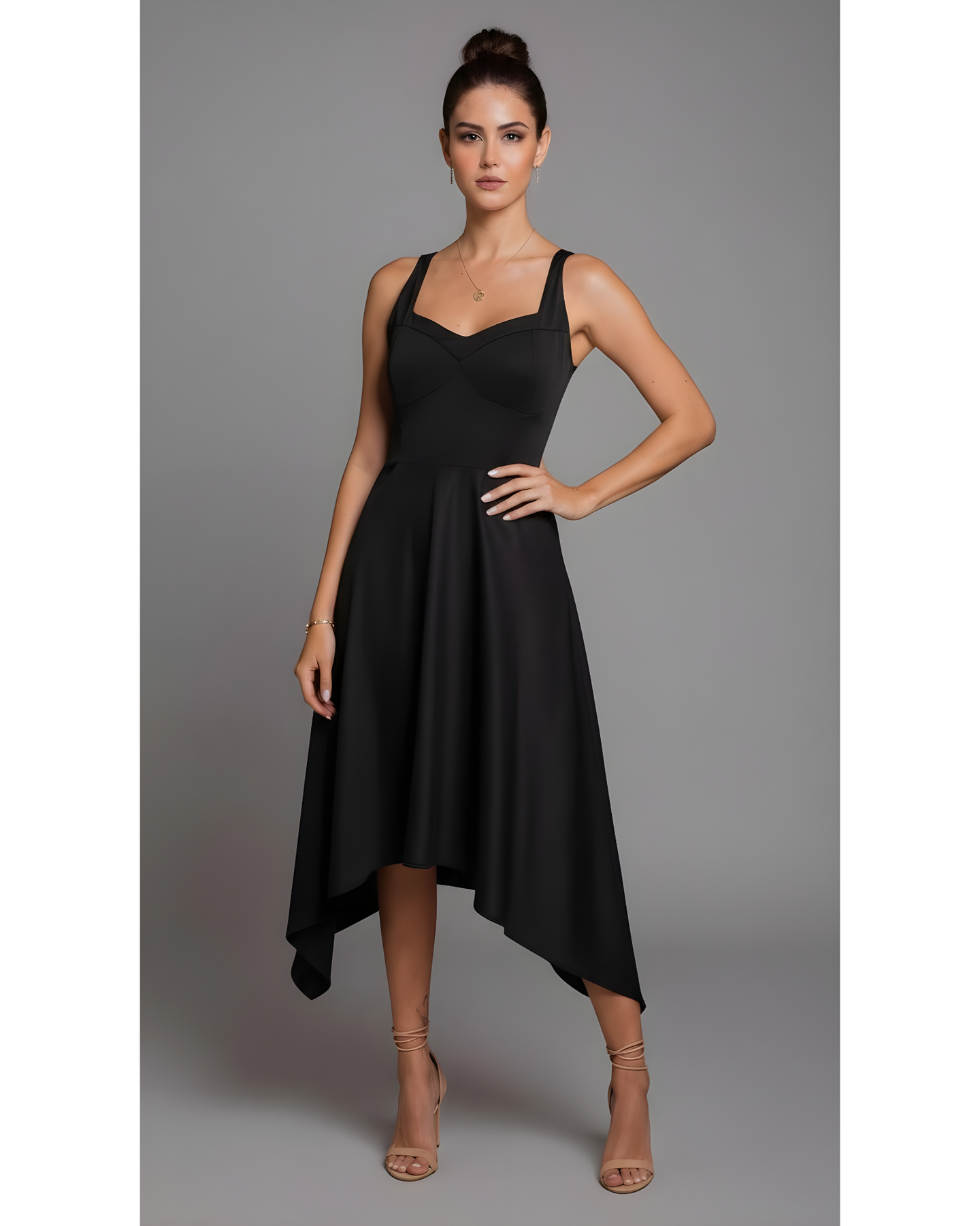 Vestido de tiras con un top tipo corset, falda con corte mas alto en la parte central y mas largo en los laterales. Un vestido super fresco y elegante.
