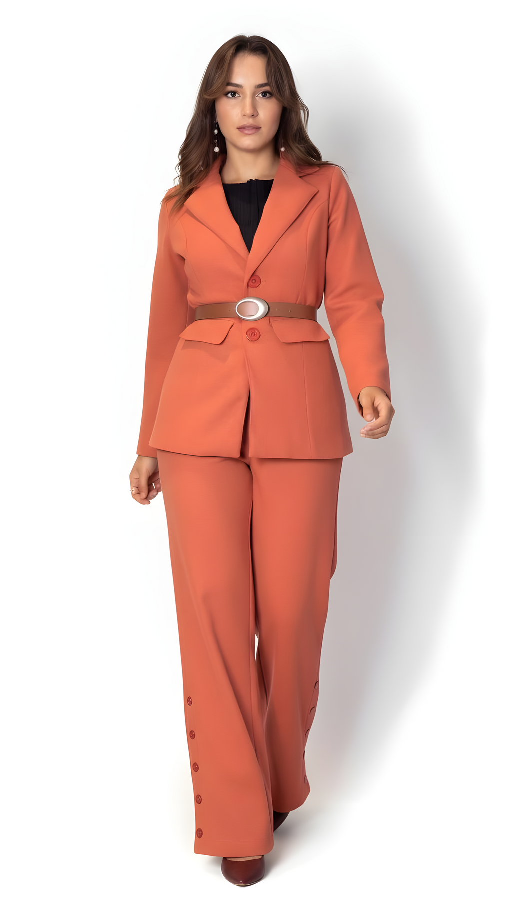 Blazer de corte semi recto, botones delanteros y bolsillos, tiene forro interior y largo por debajo de las caderas.