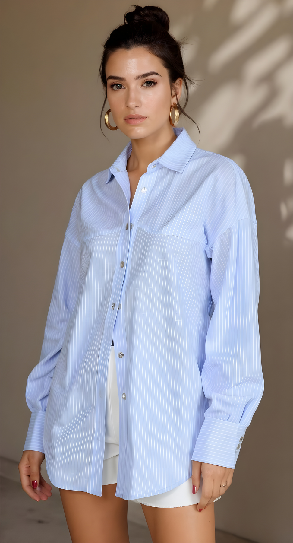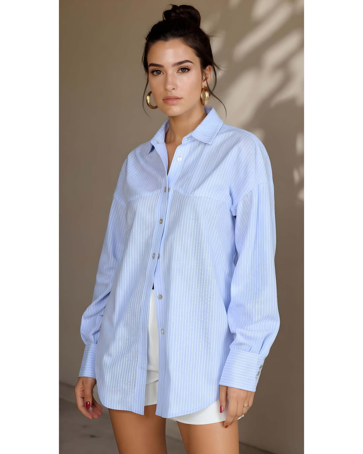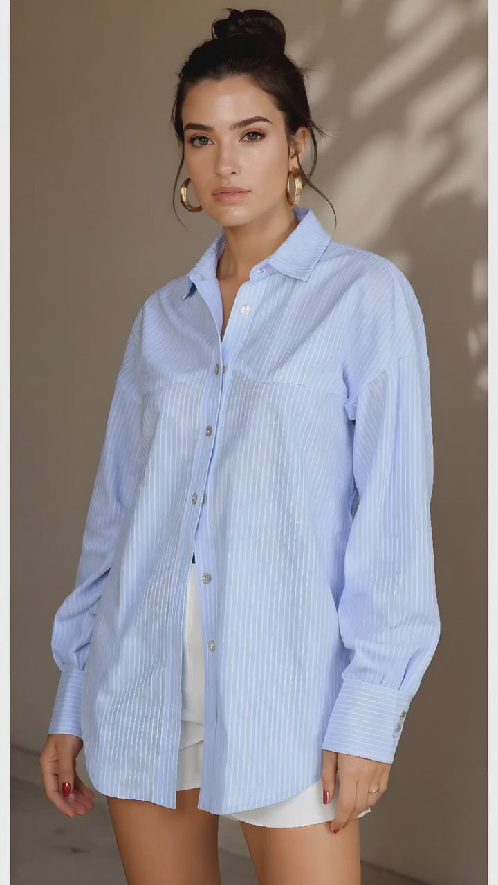 Blusa tipo camisa, con  detalles de cortes en la pechera y espalda, un básico de tu fondo de armario que podrás llevar en cualquier momento del día.