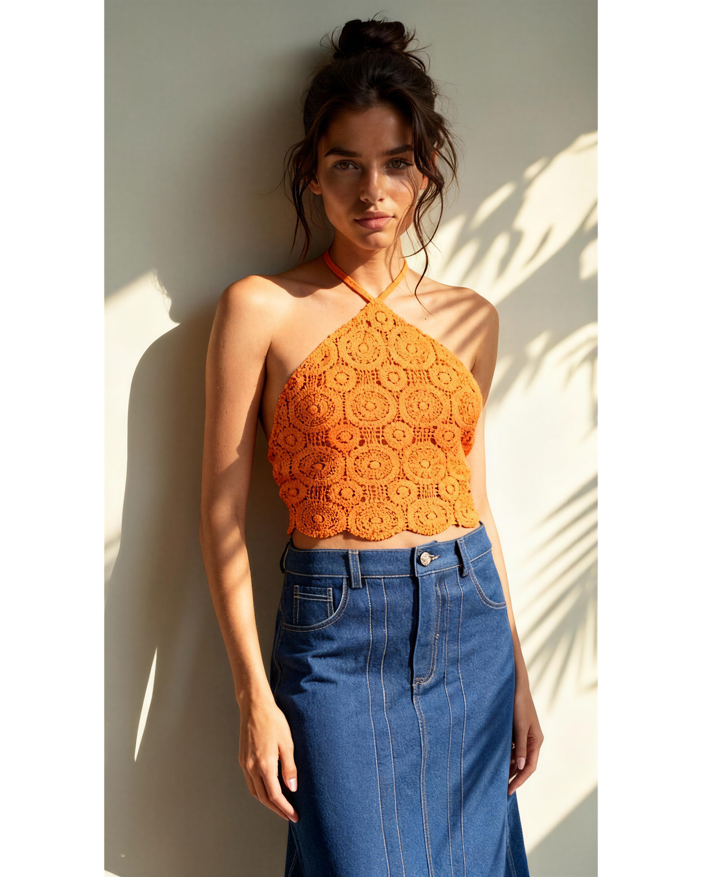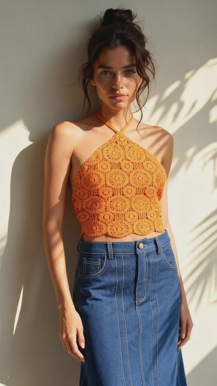 Delicado top tejido crochet, modelo triángulo, una pieza clave en este verano que podrás combinar con diferente prendas inferiores. Con este top te sentirás relajada y muy femenina